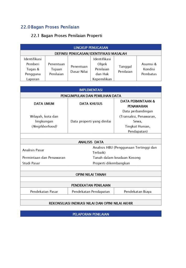 Bagan proses penilaian merupakan gambaran alur atau flowchart yang memuat langkah-langkah utama dalam appraisal. Di dalamnya terlihat tahapan berurutan, mulai dari pengumpulan data, analisis, hingga laporan akhir.