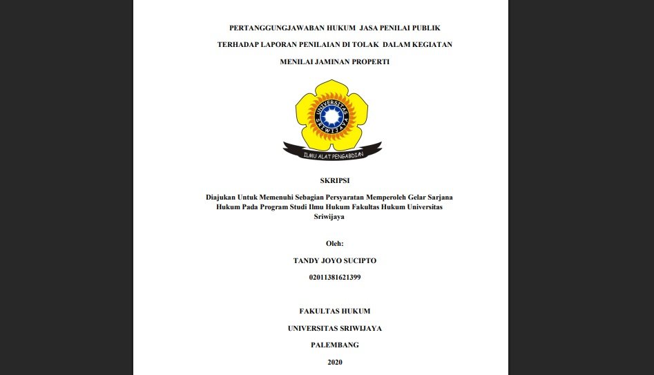 Dalam praktik penilaian properti, Jasa Penilai Publik berperan krusial dalam menentukan nilai wajar suatu aset, khususnya saat aset tersebut dijadikan jaminan kredit. Namun, penolakan terhadap laporan penilaian sering kali menimbulkan persoalan hukum. Penelitian oleh Sucipto, Tandy Joyo, Joni Emirzon, dan Yunial Laili Mutiari dari Universitas Sriwijaya (2021) meneliti secara mendalam bentuk pertanggungjawaban hukum Jasa Penilai Publik ketika pengguna jasa atau pihak pemberi pinjaman menolak hasil penilaian mereka.