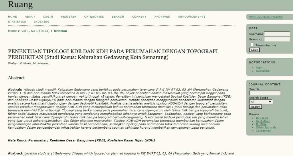 - Kristian & Mussadun (UNDIP) – Penentuan Tipologi KDB dan KDH pada Perumahan di Topografi Perbukitan (Studi Kasus: Gedawang, Semarang). Penelitian ini menemukan bahwa kondisi topografi mempengaruhi penerapan KDB dan KDH di kawasan perbukitan.