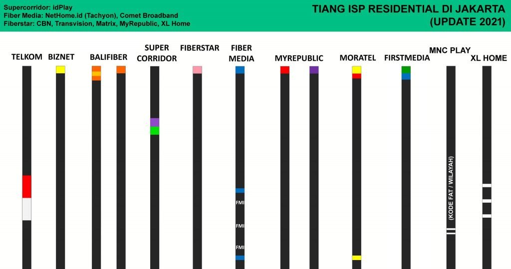 Kode warna tiang provider internet ISP di Indonesia memang dapat menjadi petunjuk penting untuk mengenali pemilik tiang, namun tidak diatur oleh regulasi nasional. Warna biru, putih, dan hijau lebih sering muncul sebagai identitas internal perusahaan atau hasil kesepakatan lokal. Oleh karena itu, interpretasi warna bisa berbeda antar kota.