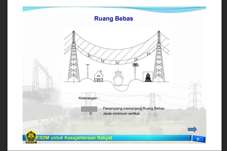 Mengutip dari laman jdih.esdm.go.id. Ketentuan utama mengenai kompensasi diatur dalam Peraturan Menteri ESDM Nomor 13 Tahun 2021 tentang Ruang Bebas dan Jarak Bebas Minimum Jaringan Transmisi serta Kompensasi atas Tanah, Bangunan, dan/atau Tanaman di Bawah Ruang Bebas. Regulasi ini menggantikan aturan lama seperti Keputusan Menteri Pertambangan dan Energi Nomor 975.K/47/MPE/1999 beserta ketentuan sebelumnya. Dengan diberlakukannya Permen 13/2021, pemerintah mencabut seluruh aturan terdahulu dan menyatakan tidak berlaku lagi.