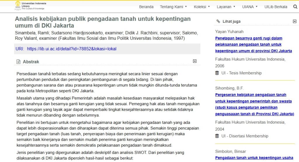 Penelitian dari Universitas Indonesia (2020) berjudul “Analisis Penilaian Tanah dalam Pengadaan untuk Kepentingan Umum di DKI Jakarta” mengungkapkan koordinasi antara BPN, pemerintah daerah, dan penilai publik menjadi faktor penentu keberhasilan proses pengadaan tanah. (https://lib.ui.ac.id/detail?id=78852&lokasi=lokal)