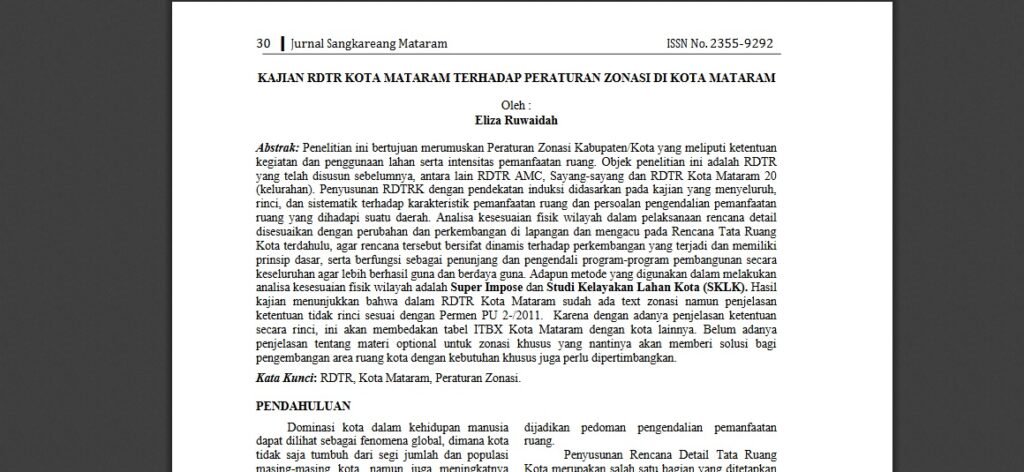 - Eliza Ruwaidah (2016) – Kajian RDTR Kota Mataram
