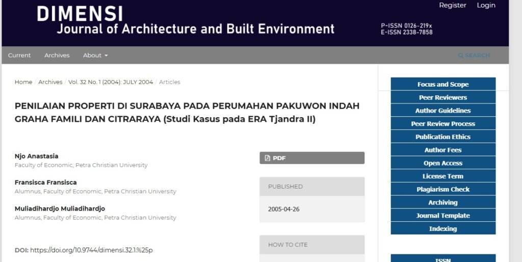 Anastasia N., Fransisca F., dan Muliadihardjo M. menulis penelitian berjudul “Penilaian Properti di Surabaya pada Perumahan Pakuwon Indah, Graha Famili, dan CitraRaya (Studi Kasus pada ERA Tjandra II)”. Mereka menerbitkan hasil kajian tersebut pada tahun 2005 melalui DIMENSI (Journal of Architecture and Built Environment) yang dikelola Universitas Katolik Petra Surabaya.