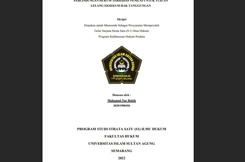 - Skripsi Universitas Islam Sultan Agung (Unissula): Perlindungan Hukum Terhadap Penilai untuk Tujuan Lelang Eksekusi Hak Tanggungan, membahas regulasi dan perlindungan bagi penilai publik dalam pelaksanaan appraisal untuk lelang.